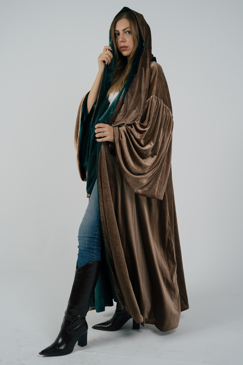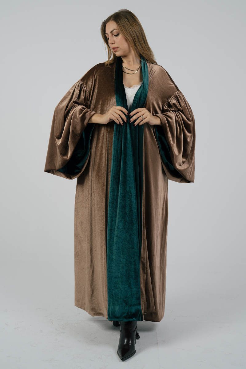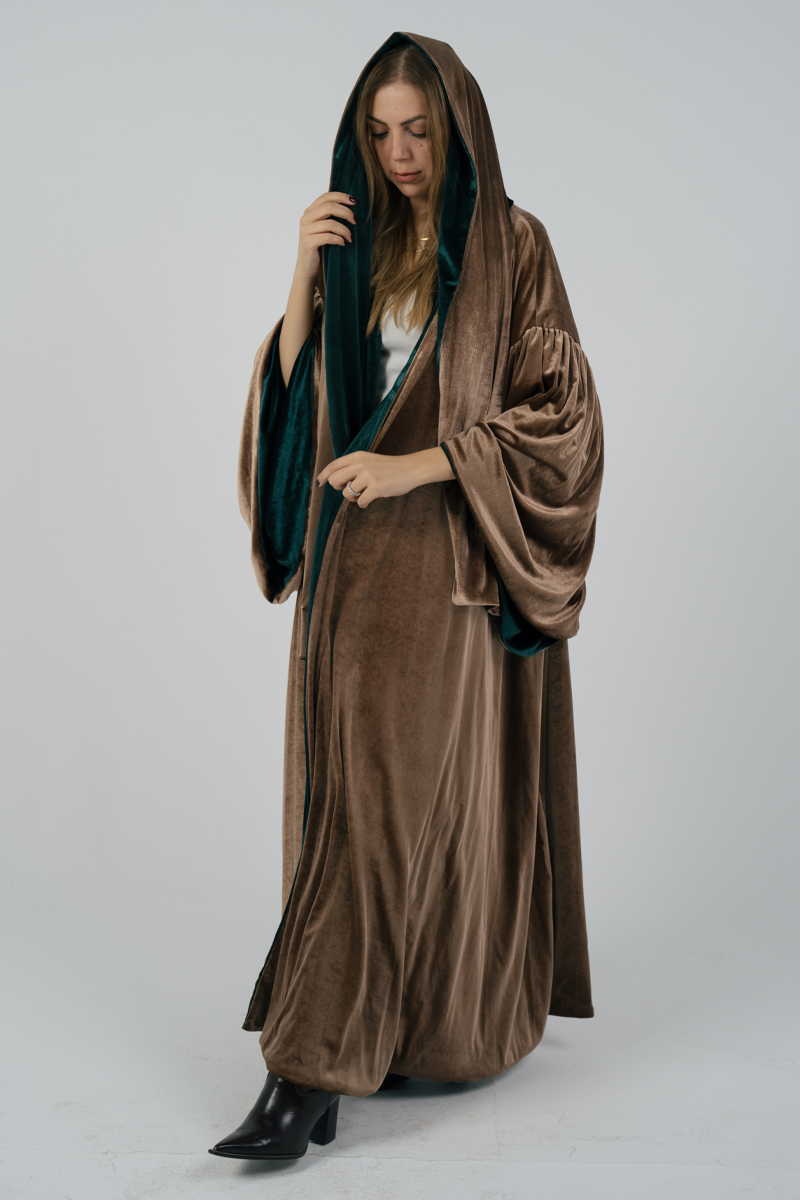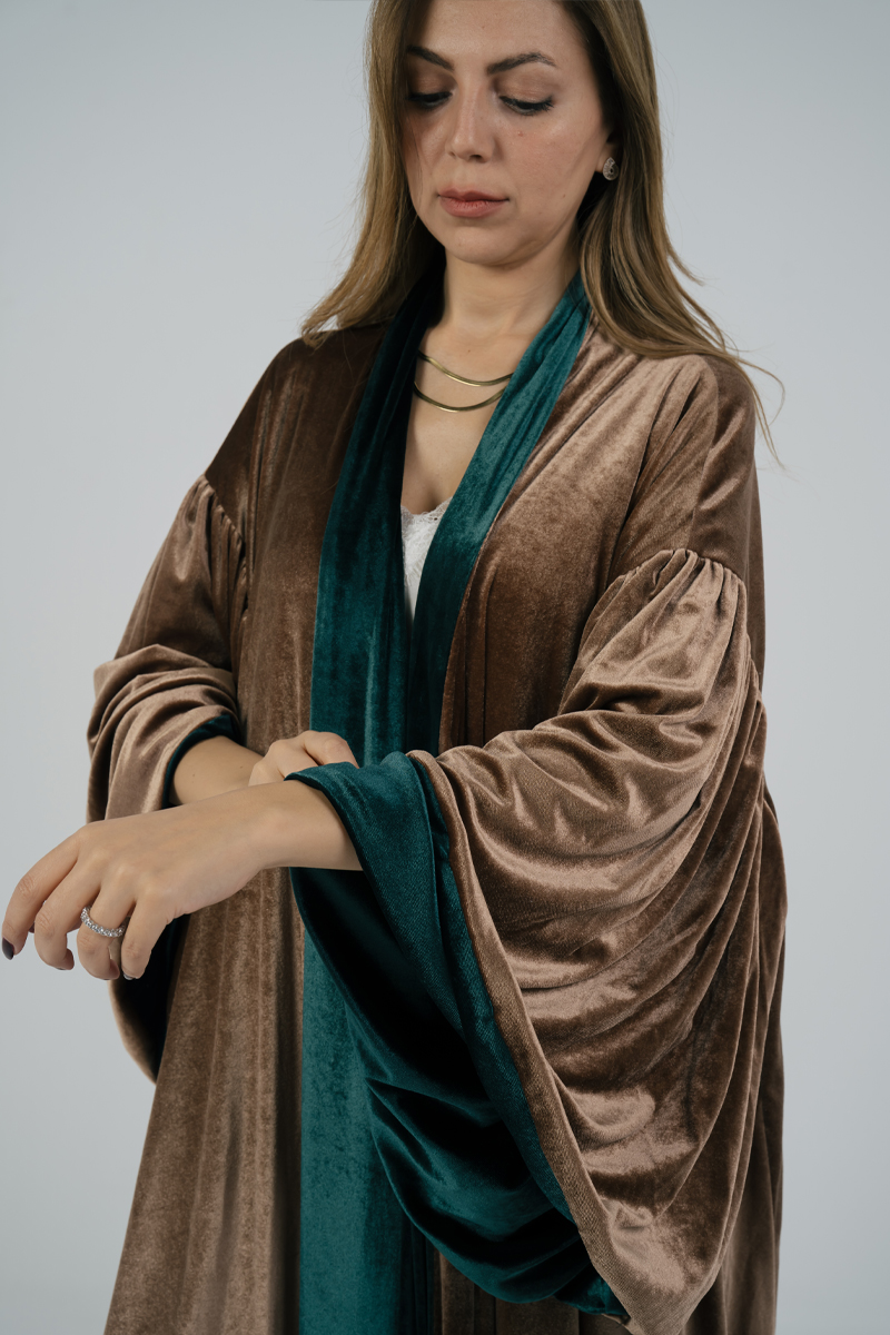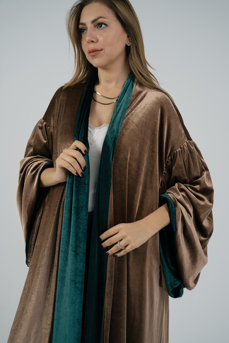 Double sided Velvet Kaftan, reversible with non attached/ separated Scarf / Veil
