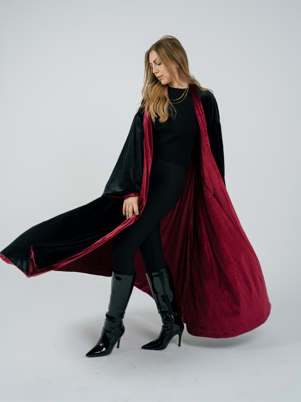 Double Face Kaftan Color : Burgundy & Black Size : One size Double sided Velvet Kaftan, reversible with non attached/ separated Scarf / Veil