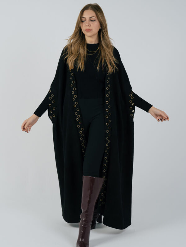 Suede Kaftan Color : Black Size : One size Suede kaftan, fully lined adorned with Eyelets