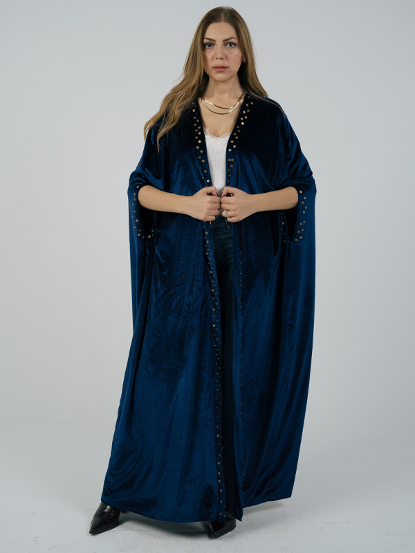 Velvet Kaftan Color : Blue Size : One size Velvet kaftan, fully lined adorned with Stud